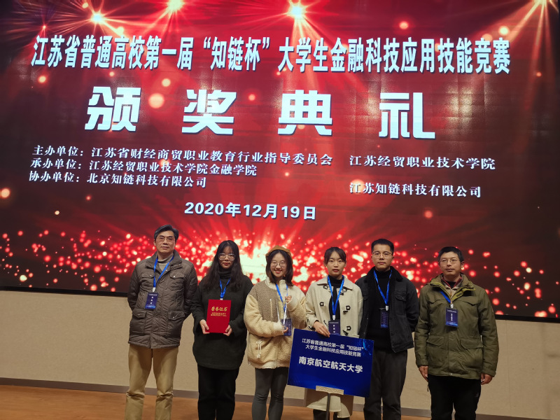 2020年12月19日,江苏省普通高校第一届“知链杯”大学生金融科技应用技能竞赛在江苏经贸职业技术学院举办,本次竞赛由江苏省高等教育学会认定,江苏省教育厅委托江苏省财经商贸职业教育行业指导委员会主办,南航、河海、南农等省内50余院校60团队300师生参赛。通过激烈地角逐,漫画柜 代表队获得了本次大赛的本科组团体一等奖。