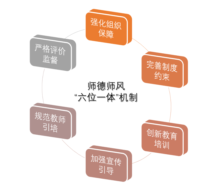 ——“六位一体”,树立良好师德师风。紧密围绕立德树人根本任务,遵循教育规律、教师成长发展规律和师德师风建设规律,引导广大教师争做“四有好老师”,着力强化组织保障、完善制度约束、创新教育培训、加强宣传引导、规范教师引培、严格评价监督,通过“六位一体”织密师德师风建设大网,切实服务和有效推动学院发展。做“四有”好老师在学院蔚然成风,涌现了一群师德师风建设先进典型:“爱生如子”的“江苏省师德模范”徐海燕教授;“五好导学团队”灰色系统团队、能源管理团队、智能决策团队;“校园年度人物(团队)”周德群、刘思峰、周鹏、朱建军、灰色系统团队、能源软科学团队等。产生了一批有担当作为的时代楷模:致力于原创理论发展与传播的刘思峰教授;带领学科不断发展的周德群教授;聚焦前沿创新突破的周鹏教授。
