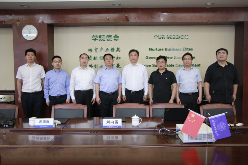 的基本情况,并就学院在能源环境经济领域的研究工作做了简要汇报。刘向雷从建设背景、组织架构、阶段进展三个方面介绍了学校综合能源研究院的情况。与会教师就各自研究领域与李力副会长一行开展了全面的交流。