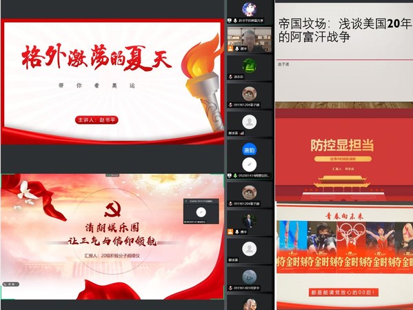 沙龙由主题发言和圆桌论坛两个部分组成,在主题发言环节,五位主讲学生结合自身假期所思所感和研究方向,针对疫情防控、奥运盛会、西藏和平解放70周年、阿富汗战争、清朗娱乐圈进行了主题分享。刘金良以《防控显担当——疫情下的南航身影》为题,结合自身投身漫画柜 疫情防控党员先锋队的经历,讲述了在南京、在南航志愿参与核酸检测、后勤志愿、情况摸查的先进事迹,诠释了疫情面前“没有从天而降的英雄,只有挺身而出的先锋”。赵书平则以《带你看奥运——这个夏天,有点格外激荡》入手,带大家回顾了中国奥运的风雨百年路,畅谈东京奥运上同为“00后”运动员的精彩表现与可颂精神,倡议同学们要争做可以请党放心的00后,在自己的领域实现报国之志。卓玛曲吉为同学们分享了《雪域欢歌70载,西藏启航新时代》的感人故事,她通过讲述百万翻身农奴之一的爷爷、奋力改变命运的父亲、新时代学生党员的自己这三代人的故事,指出家族命运变化的背后是中国共产党强有力的正确领导以及“一步跨千年”的社会主义制度历史性飞跃。赵子诺以《帝国坟场——浅谈美国20年的阿富汗战争》为题,与大家分析了美国入侵阿富汗的前世今生,并针对“为什么阿富汗能成为帝国坟场”“美国为什么入侵阿富汗”等一系列问题进行探讨,一步步剖析“普世价值”的虚伪本质以及美式民主的局限性。阎瑾仪从娱乐圈专项整治行动入手,交流了对《清朗娱乐圈,让正气与信仰领航》认识和理解,她从饭圈文化到明星案件,直击“泛娱乐化”“苦流量已久”的社会痛点。此外,她着重强调“信仰”的力量,并对创建一个充满正气的社会充满希望。
