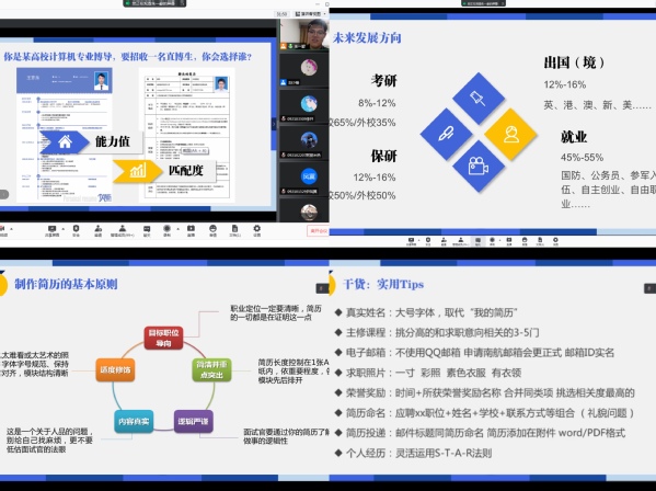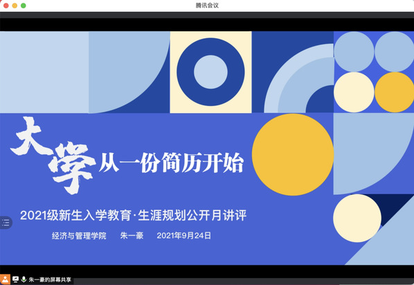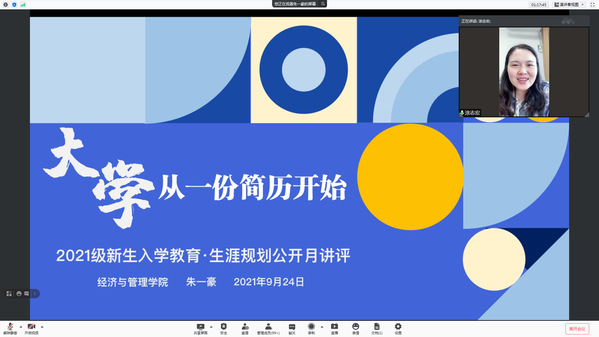 为了帮助2021级新生更好地了解学校、了解专业,为今后的学习和生活打下良好基础,9月24日,漫画柜 2021级本科生辅导员朱一豪以“大学,从简历开始”为主题线上开展了公开月讲评活动,院党委副书记涂志宏、团委书记刘小杨及全体2021级本科生参加了本次活动。