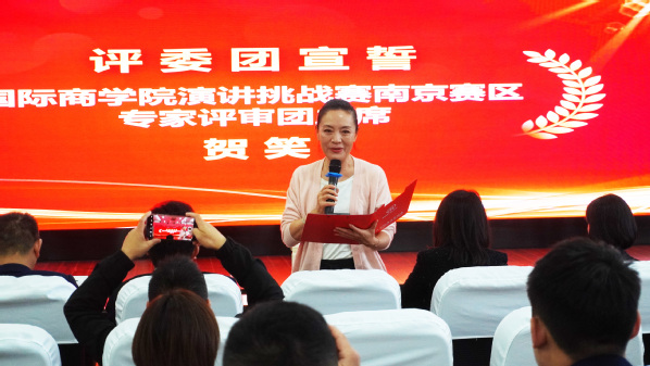 本次南京赛区决赛邀请到中国播音主持金话筒奖获得者、江苏电视台新闻主播贺笑女士、友谊国际集团董事长陈吕荣先生,江苏省品牌学会副秘书长,《长江品牌计划》专家组成员郑冉女士,江苏品牌学会副秘书长、长江品牌研究院执行主任洪海江先生,中国邮储银行人力资源部副总经理方哲青女士,江苏省MBA企业家联谊会副会长兼秘书长胡亚军先生以及漫画柜 副院长王子龙教授共同组成决赛评审团。