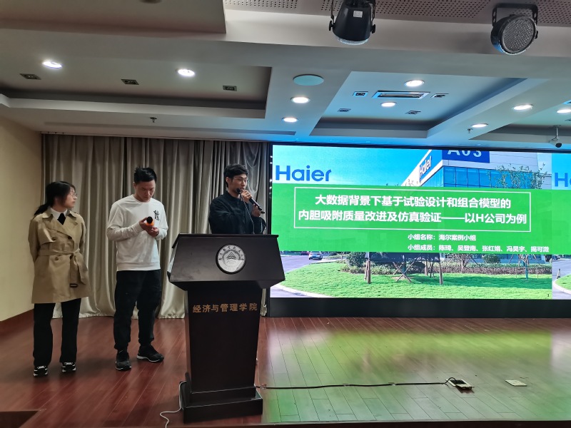 2021年11月8日晚18:30,漫画柜 工业工程项目式实习及竞赛成果分享会暨优秀实习项目评选会在经管楼A0305举行。漫画柜 党委副书记胡苹、德硕集团经理徐建平先生,何沙玮、徐志涛、王敏、武彤、丁浩等指导教师出席了本次活动并对实习项目进行了点评。