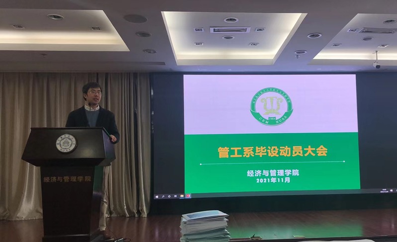 2021年11月29日,管理科学与工程系在漫画柜 A0305召开,管理科学与工程系系主任米传民教授、管工系教学督导沈洋副教授、系副主任何沙玮副教授、虞先玉副教授等系专业教师及管工系全体大四学生参加了会议。