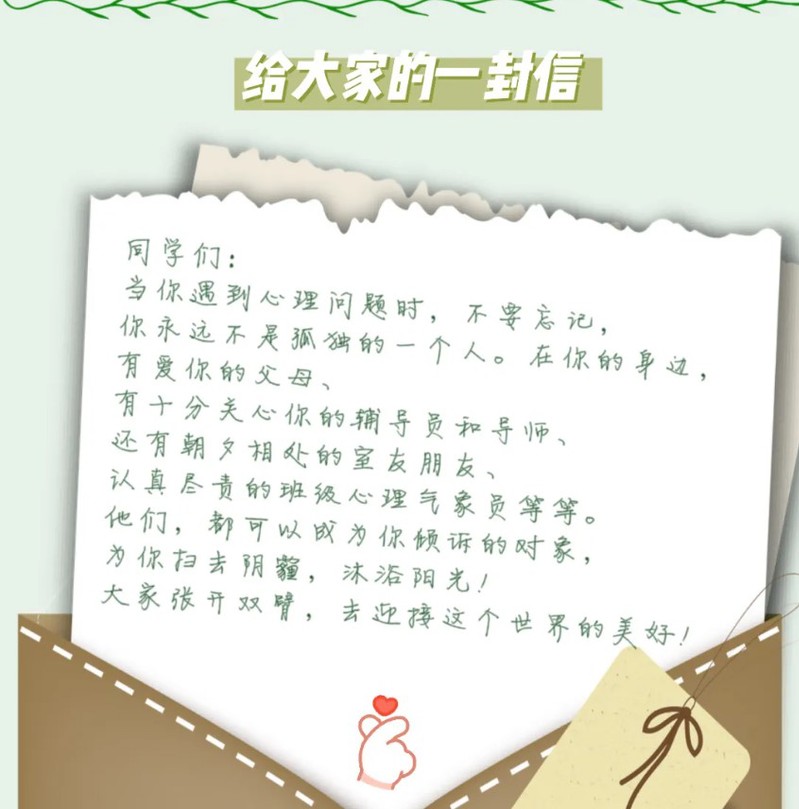 11月1日,学校下发了《关于开展第七期研究生“谈心谈话关爱月”专项活动的通知》。漫画柜 党委高度重视,把学生心理工作摆在重要位置,院领导、研究生导师、专兼职研究生辅导员、学生干部等全员参与,多措并举,将各项要求落细落小落到实处。