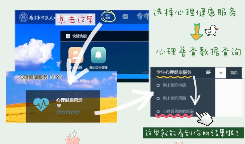 通过官方的微信公众号平台,漫画柜 以生动形象的方式向学生普及专业的心理测评知识,包含测试的获得渠道、测试结果的查询方法及数据含义等内容,引导学生主动关注心理健康,自发评测自身心理状况,广泛推介外部心理支持平台。