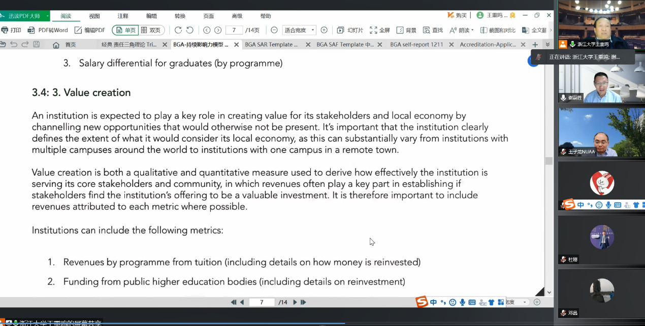 12月21日晚,国际工商管理认证协会(AMBA)中国区总负责人、浙江大学文科资深教授、浙江大学全球创业研究中心主任王重鸣教授应邀指导漫画柜 BGA认证工作。因疫情防控需要,本次会议在线上召开。漫画柜 院长周德群、党委书记苏州、学院副院长王子龙、邓晶、谢乃明、院长助理兼认证中心主任谢嗣胜、MBA教育中心执行主任杜刚以及相关专业老师参加会议。