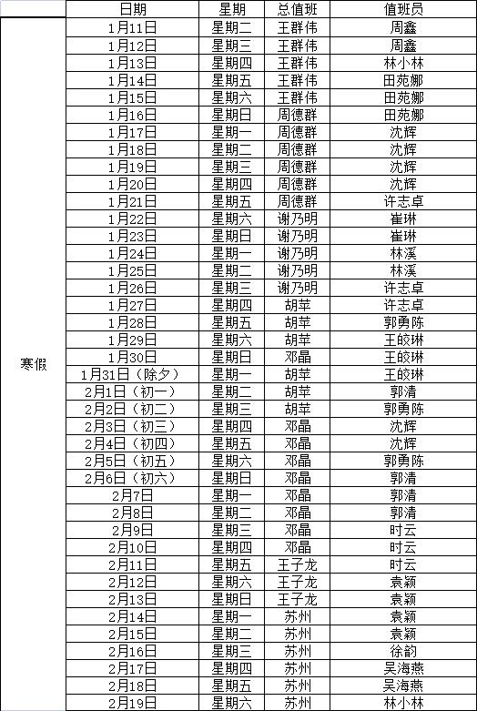 附件:2022年寒假值班表