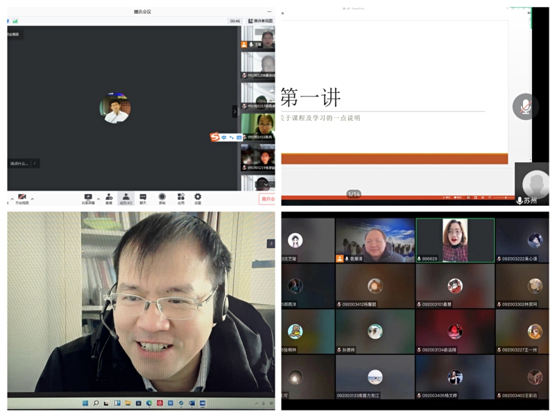 为保证线上教学的有序开展,学院教学办提前对前两周需开展线上教学的课程进行了信息统计,并对相关教师和同学进行了提前动员,明确了相关要求。如进入线上课堂后,学生需注明学号姓名等信息,人数不超过两个自然班的线上课程学生需打开摄像头;鼓励教师充分使用会议聊天工具或QQ、微信群与同学互通信息,活跃课堂氛围;并通过完善PPT的教学素材及呈现模式,提升线上课程的教学效果。