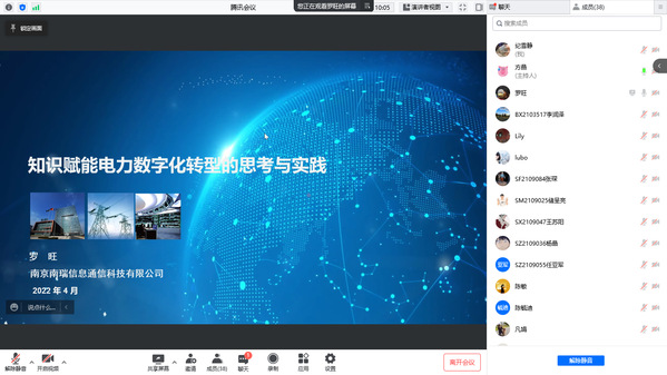 4月22日下午,南瑞集团正高级工程师,江苏省产业教授罗旺应漫画柜 管理科学与工程系、以及信息管理与电子商务研究所的邀请,通过腾讯会议作了“知识赋能电力数字化转型的思考与实践”报告,本次报告由米传民教授主持,部分硕、博士研究生参加此次报告。