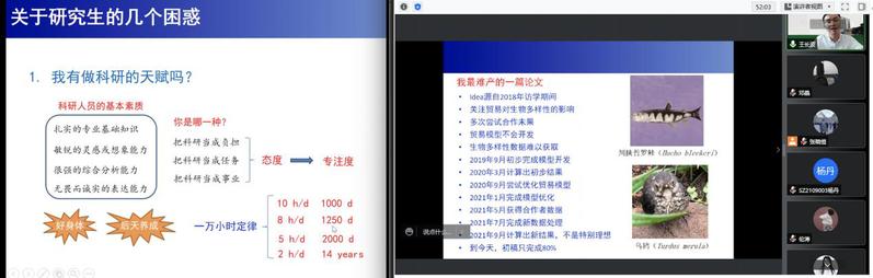 会议开始,金倩颖以“从始至终,有始有终”为题,介绍了论文完整的写作与发表流程,并基于过往的投稿经验分享了自己的学术心得和科研方法。紧接着王长波以“如何朝着做好科研的目标迈进”为题,从自身科研经历出发,对研究生关注的热点问题进行了解答,并给同学们提供了很多科研方面的建议。