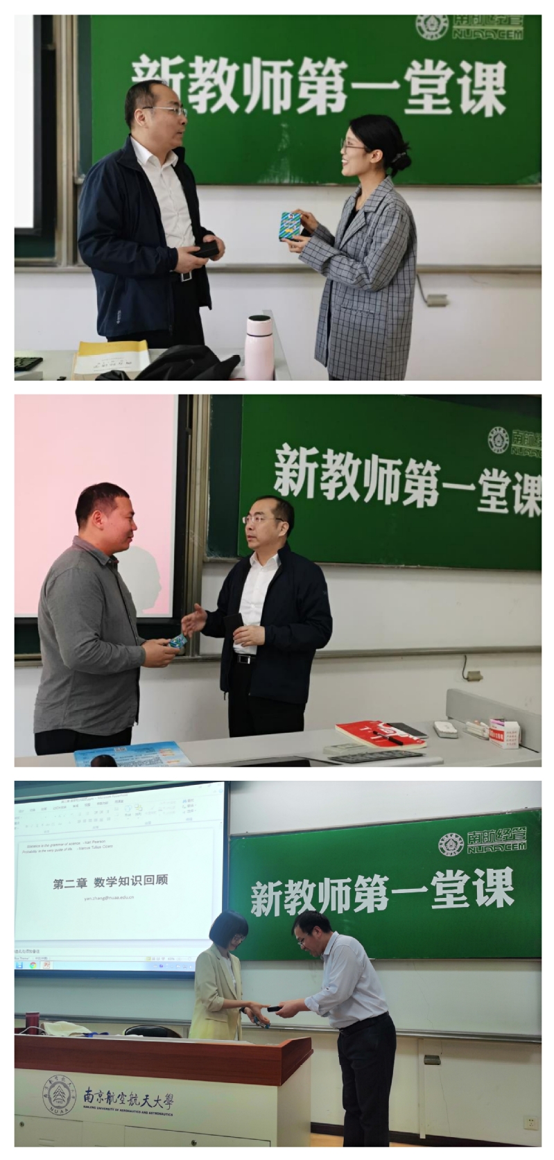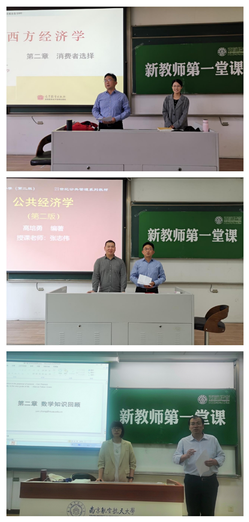 5月3日和5月6日两天下午,学院党委书记苏州、院长周德群、副院长邓晶、教学办与学工办相关人员依次为孔茜茜、张志伟、张燕三位新教师进行了新教师“第一堂课”引荐仪式,代表学院全体教师及同学向三位新教师的到来表示热烈的欢迎。