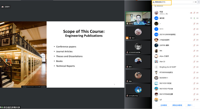 5月5日晚8点至10点,加拿大滑铁卢大学Zhongchao Tan教授受学院智能决策与风险分析研究所邀请,在腾讯会议(51867085111)进行了“Academic Writing for Engineering Publication: Guide for Non-native English Speakers”为期四周的短期课程的第一节课程分享。