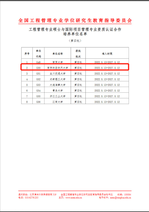我校将根据合作实施细则在合作有效期(五年)内开展认证工作,并及时总结经验,不断提高工程管理硕士培养质量。