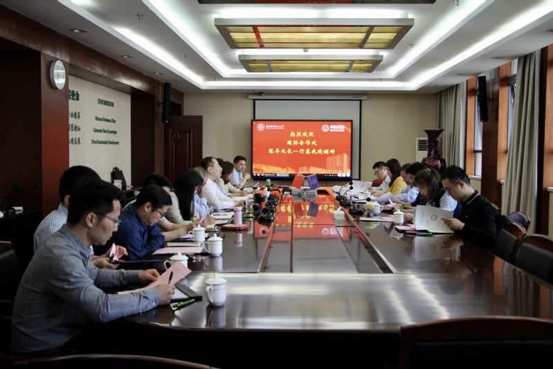 5月18日国际合作处处长张卓、副处长张国权、沈敏、综合事务科科长祖语嫣、国际合作项目科科长田立丰、出入境服务中心主任董峰来漫画柜 调研座谈。漫画柜 党委书记苏州、院长周德群、院党委副书记胡苹、副院长王子龙、谢乃明、查冬兰、院长助理蒋昕嘉、欧阳林寒、管工系系副主任达高峰、工商系赵亚普副教授、院国际合作事务秘书许志卓参加了此次调研。