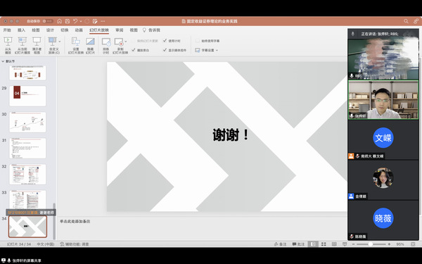 5月26日上午,中证信用增进股份有限公司业务副总裁张烨轩应金融研究所的邀请,通过腾讯会议为漫画柜 师生作了题为“固定收益证券理论的业务实践”的报告,本次报告由金融研究所的金倩颖副教授主持,本硕博80余名同学参加了此次讲座。