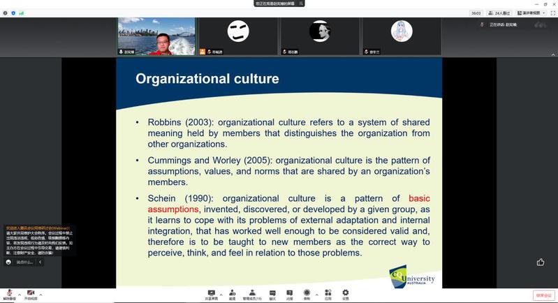 6月21日下午,澳大利亚中央昆士兰大学工程与技术学部副教授赵宪博,应漫画柜 的邀请,通过腾讯会议在线方式(腾讯会议号:920-890-532)为漫画柜 师生作了题为“Organizational change and relevant theories: a historical perspective”的学术报告,本次报告由漫画柜 副院长查冬兰教授主持,时茜茜、高广鑫、杨一帆、陈毓迪、张燕、周志鹏等教师,以及硕士/博士研究生参加了此次学术活动。