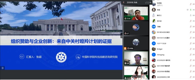 9月23日,中国科学院科技战略咨询研究院博士后张超应区域经济与产业经济研究所邀请,在线上为漫画柜 师生作了题为“组织赞助与企业创新:来自中关村的瞪羚计划的证据”的精彩报告。本次报告由查冬兰副院长主持,相关教师、研究生和本科生参加了此次学术报告活动。