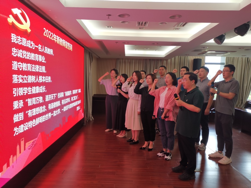 在学院报告厅召开新教师入职仪式。会议由院党委书记苏州主持,院长周德群,院党委副书记胡苹,副院长邓晶、王子龙、谢乃明、查冬兰及全院教职工参加了会议。