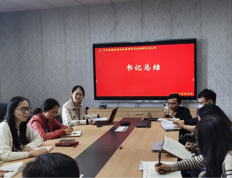 党支部书记查冬兰作总结讲话。她表示团队在国家重大需求牵引下,长期致力于构筑能源软科学研究高地,凝心聚力、不断创新。要坚持用习近平生态文明思想指引方向,坚持以科技创新引领绿色发展。希望支部成员能够深耕科学领域,探索实践创新,做理论的开拓者和行动的践行者,争取为我国的绿色发展事业做出更大贡献。