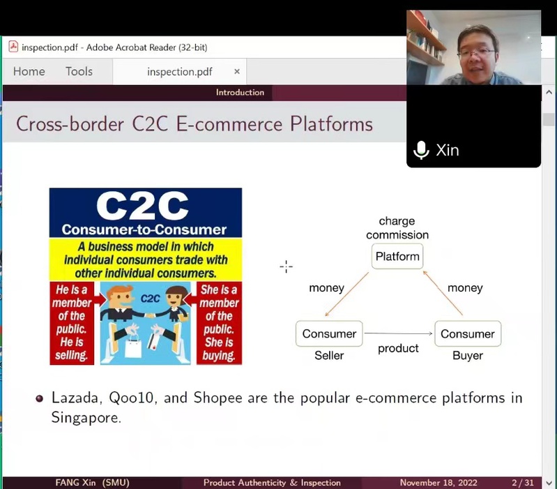 11月18日上午,新加坡管理大学方心副教授做客“经管大讲堂”(2022第39期)分享了《跨境电商中商品真伪的非对称信息》学术报告。本次报告会由智能决策与风险分析研究所高广鑫副教授主持,经管院30余名师生线上参会。