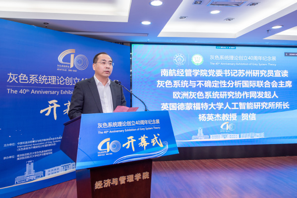 单忠德代表学校对莅临开幕式的领导嘉宾表示诚挚欢迎,对给予南航事业发展关心支持的社会各界表示衷心感谢。他指出,党的二十大报告强调加强基础研究、增强自主创新能力对我国实现高水平科技自立自强的重要意义,南航始终坚持“为党育英才,为国铸重器”的初心使命,大力支持本土原创灰色系统理论的发展,为发展中国原创学说、传播中国学术声音贡献了南航智慧和南航力量。希望以此次纪念展为契机,进一步深化交流合作,以更加开放的视野研讨新时代灰色系统理论,凝聚智慧力量,推动创新发展,使中国学者原创的灰色系统理论不断发展壮大,让中国原创学说传播全球,更好地“为党育英才、为国铸重器”,更好地服务社会、报效祖国,携手为构建人类命运共同体作出新贡献、谱写新篇章。