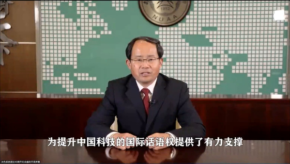图9 南航漫画柜 党委书记苏州宣读GSUA执行主席杨英杰教授贺信