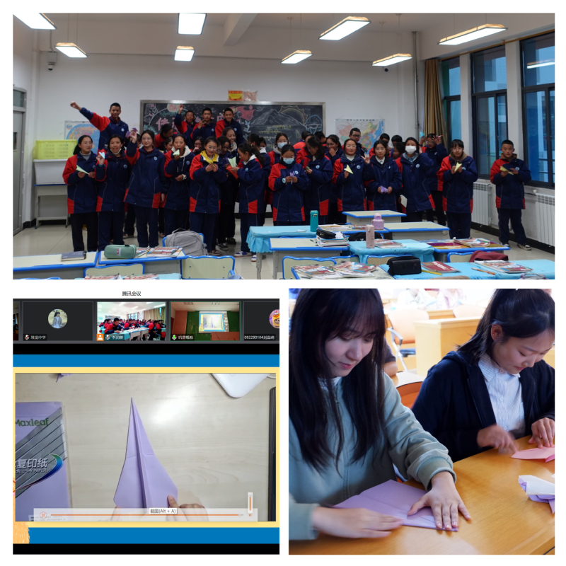 梦想始于足下,拉萨、南京两地学生在李诗琦同学的带领下,共同折出写有未来寄语的纸飞机并放飞,五彩的纸飞机,是梦想汇聚,也是两地学生心心相连的纽带。