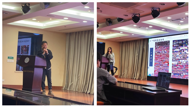本次活动还邀请到我校二十二届研支团成员、目前漫画柜 企业管理研二学生约日古丽•托合提,与学院2022级本科生辅导员张延波,共同分享了他们在西藏的支教生活,以支教老师、西部计划志愿者、南京拉萨的连接者三重身份作为一年总结,分享支教过程中感受到的爱与温暖。鼓励同学们依托暑期社会实践、西部计划等平台,践行雷锋精神,让青春在全面建设社会主义现代化国家的火热实践中绽放绚丽之花。