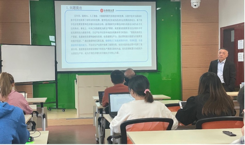 除此之外,陶长琪对于论文投稿进行了悉心指导。陶长琪从发文的角度强调了论文选题的新颖性和实践导向,勉励大家积极扎根于中国实践的前沿研究。报告尾声,与会师生围绕计量模型的构建、数据收集等问题踊跃向陶长琪教授提问,得到了专业的解答和建议。报告最后在热烈的掌声中圆满结束。陶长琪的讲座既拓展了与会师生对研究方法的认知与理解,亦激发了大家对数字经济背景下数据这一新生产要素的关注和思考。