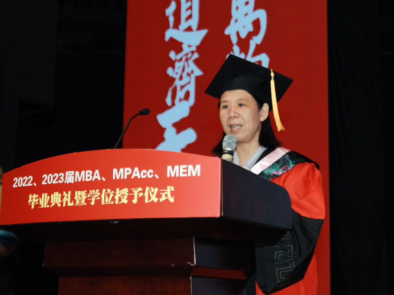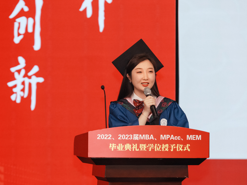 教师代表蔡静雯老师祝贺大家顺利毕业的同时,强调了研究生期间案例开发的价值和意义。南航在全国百篇优秀管理案例中取得优异成绩,是MBA学子共同奋进的最好证明。蔡老师表示每一位毕业生坚定的信念与使命担当,为学弟学妹做出了表率!