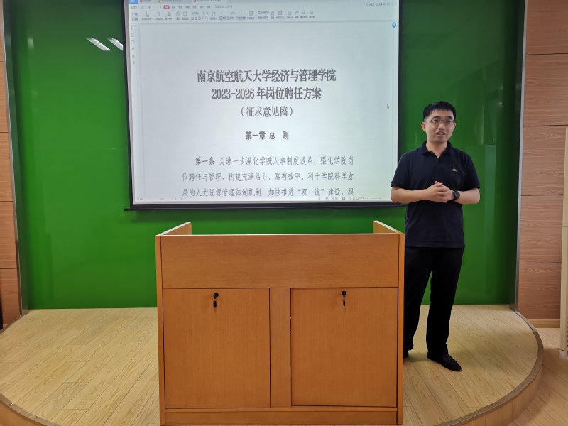 王群伟就学院新一轮岗位聘任方案的岗位设置、岗位职责、聘任条件、聘期与目标考核、聘任组织、评聘程序进行了重点阐释,并介绍了前期面向全院教师征求意见的情况,围绕老师们提出的意见逐一予以反馈。他表示,学院领导班子高度重视新一轮岗位聘任工作,在上一轮聘岗方案的基础上,结合学院发展实际,反复研究,深入分析,听取多方声音,组织多轮次修改,起草了学院《2023-2026年岗位聘任方案》,提交大会审议。他希望通过新一轮的岗位聘任工作,构建充满活力、富有效率、利于学院科学发展的人力资源管理体制机制,加快推进“双一流”建设,推动学院事业高质量发展。