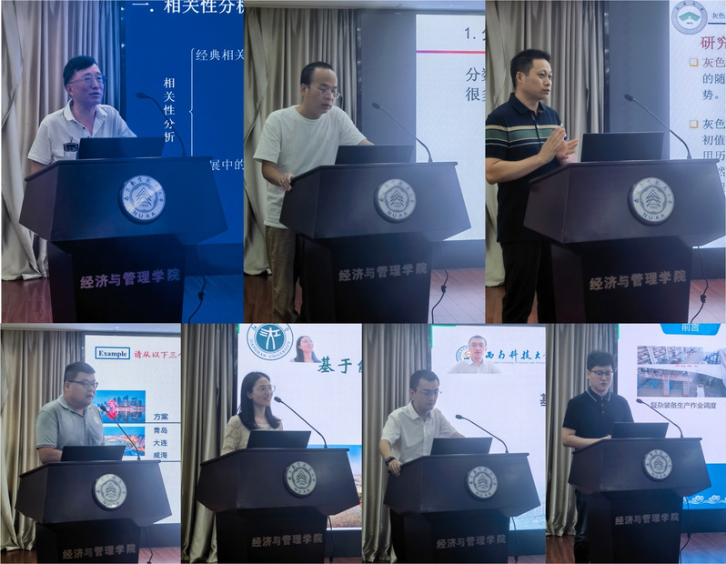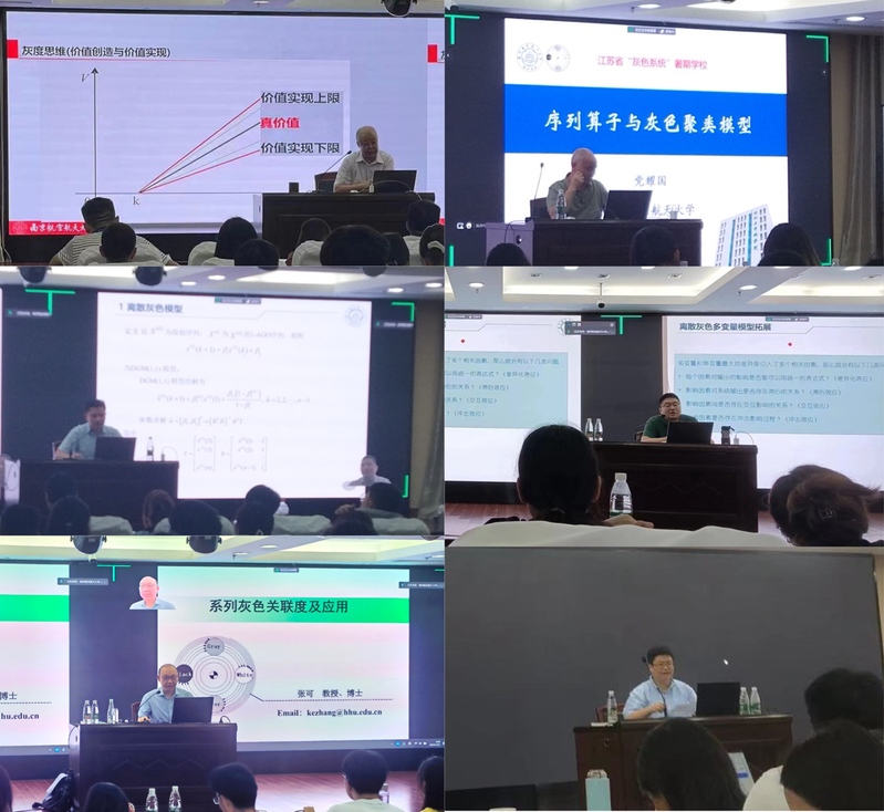 7月22日,暑期学校特别邀请了西华师范大学魏勇、河北工程大学吴利丰、南通大学郭晓君、山东大学蒋鹏、江汉大学郭欢、西南科技大学马新、河海大学陈楠磊等专家学者,分别以“经典相关性分析与发展中的灰关联分析”、“分数阶灰色预测模型及应用”、“自记忆灰色预测模型及失能老人应对策略”、 “灰色多属性决策的应用思考”、“基于能源系统特征的灰色建模研究”、“基于核学习方法的灰色模型建模机理及算法”和“灰色调度模型与算法”为主题,向学员们讲授相关领域最新的前沿知识和实践经验。