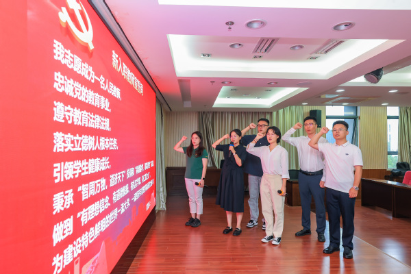 在新进教职工入职仪式上,李昊、高园园、任亚楠、蔡文武、陈思华、胡宇昕六位老师在全院老师的见证下庄严宣誓:将忠诚党的教育事业,落实立德树人根本任务,秉承“智周万物,道济天下”校训和“尚德励学,筹策济世”院训,做“四有”好老师,为建设特色鲜明的世界一流大学、一流漫画柜