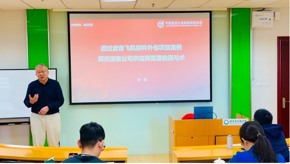 案例解析后,韩主任结合教科书知识,解析波音公司的市场营销战略、全球供应源战略的确立与实施等内核,看波音公司世界领先的商业模式和全球竞争力。他从市场预测、产品定位与市场营销、供应商选择与管理等方面重点展开分享,并特别强调企业侧重于选择“最佳价值”的供应商,而不是能力最强或者价格最低的供应商,以波音公司选择成飞为合作伙伴的真实事例展示了波音公司致力于“双赢”的供应商发展战略。最后,韩主任从波音公司洞察市场、引导需求的能力,客户理解和为客户创造价值的能力,全球化供应商管理的能力等方面总结了波音公司的核心竞争力。