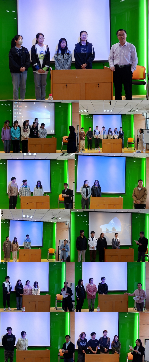 各项目组指导老师带领同学上台,对相关项目的研究背景和思路进行逐一展示。随后,创新区教师代表何沙玮上台发言,鼓励学生们在项目研究中不断进取,持之以恒,并预祝项目顺利开展,项目结题时取得丰硕成果。