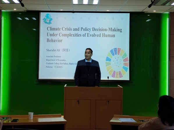 巴基斯坦科特苏丹研究院经济系副教授Sharafat Ali阿里作题为“Climate Crisis and Policy Decision-Making Under Complexities of Evolved Human Behavior”的学术报告,阿里副教授首先提出极端气候事件是支持气候变化是人类面临的最可怕危机之一这一观点的有力证据,然后通过科罗纳危机的例子清楚地说明了人类行为如何受到进化过程、认知能力和资源可用性等因素的影响。最后指出政府在制定缓解战略时,必须考虑到人类行为的演变性质。
