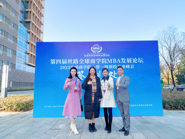 2023年11月26日,第四届丝路全球商学院MBA发展论坛2023全球商学院一带一路创投产业峰会在西安电子科技大学南校区网安大楼会议中心召开。漫画柜 MBA教育中心胡晓菲、蔡雪姣老师受邀出席了本次活动。张帅、杨越代表MBA学员参会。