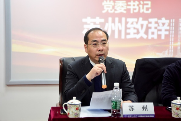 苏州在开班仪式上致辞。他代表学院党政与全院师生员工,热烈欢迎63位学员成为南航经管大家庭成员。他指出,2023年10月中旬,中共中央印发了《全国干部教育培训规划(2023-2027年)》,对今后5年各级各类干部的教育培训特别是干部的能力提升培训提出了系统性规划与新的更高要求。正是在这样的背景下,江宁区林涛书记亲自关心、国资办杨大鸿主任多次与学院商谈、沟通,推动了本次培训班顺利组建开班。他强调,作为江宁重要驻区单位,南航经管有责任发挥好教育、科技、人才优势,更好支撑服务江宁区在新发展阶段构建新发展格局。学院高度重视本次干部培训班,课程体系设置多个模块,既安排有体现“天”“地”“人”“通”的理论教学,同时还安排了沉浸式现场教学,课程师资团队包括高校学者、政府体制内专家、产业精英和行业高管,努力给学员们优质的教育培训体验。他希望大家对课程培训安排以及学院各方面工作多提意见和建议。