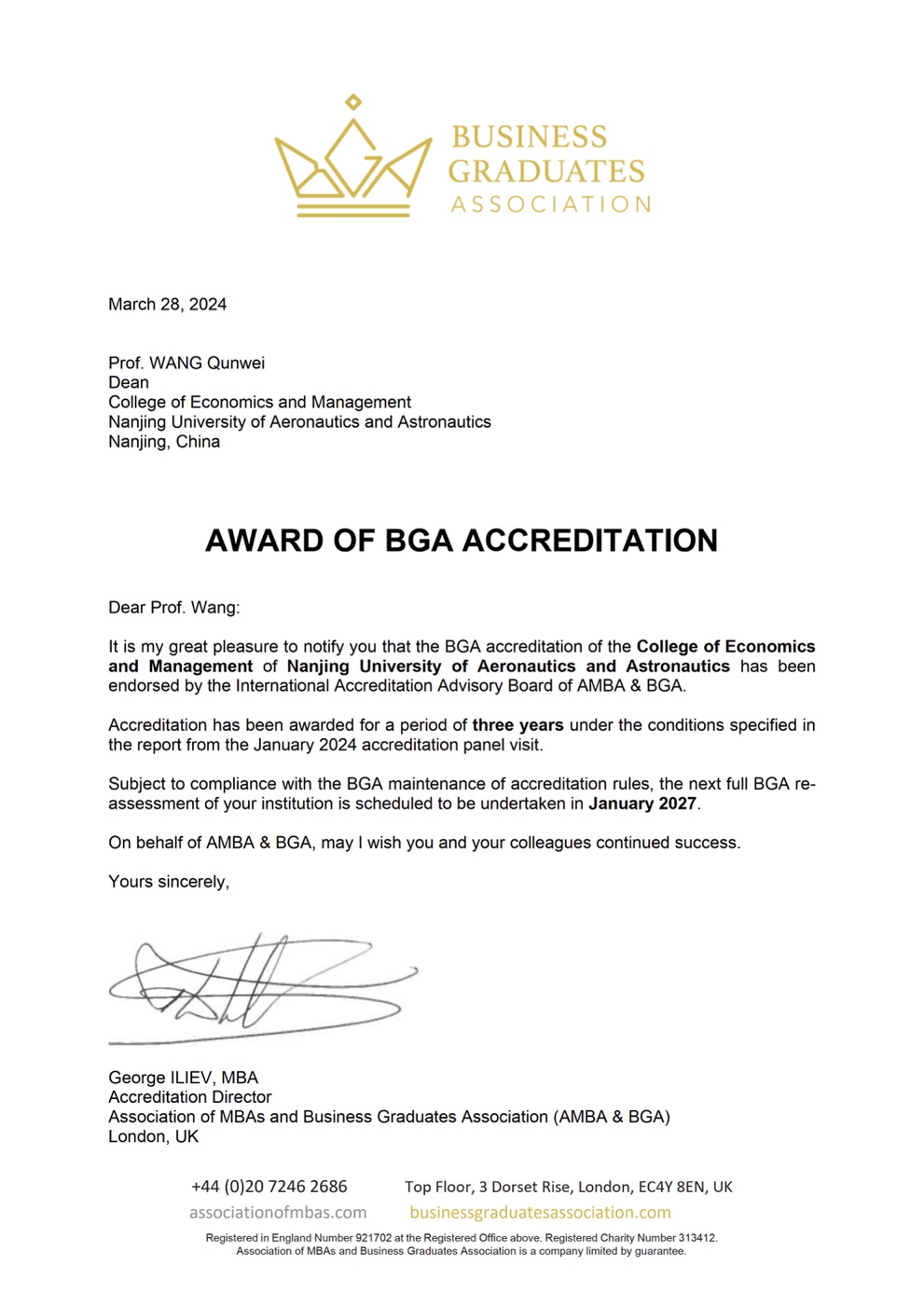 近日,漫画柜 收到英国商学院毕业生协会(Business Graduates Association,简称BGA)发来的官方贺信,祝贺学院顺利通过BGA国际金牌认证,这是我校学院层面的首项国际商科认证。