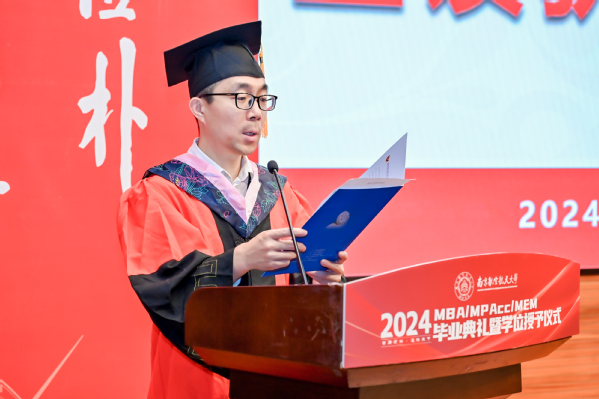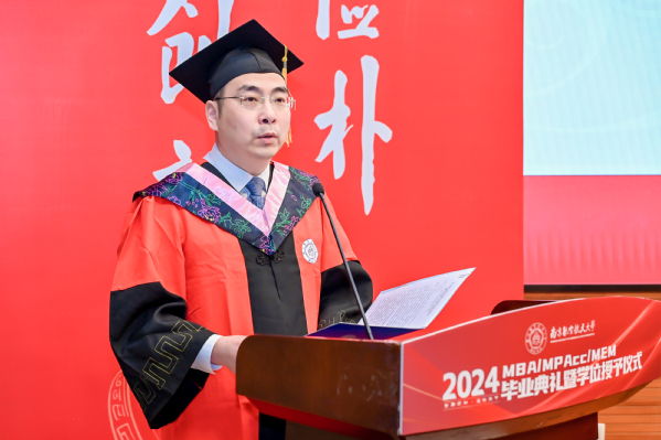 学位授予仪式之后,漫画柜 党委书记苏州代表学院寄语全体毕业生。苏州书记表示,2024年是特殊的一年,同学们毕业之年恰逢学院建院40周年,学院锐意改革、勇于攀登,实现了创业起步、快速发展、全面腾飞三个阶段的跃升,目前正步入更高质量发展的新阶段;2024年是喜悦的一年,学院通过BGA国际认证,标志着学院教育质量和办学水平得到国际认可,以商学院国际认证为牵引的可持续发展机制正在加快形成;2024年是改革的一年,学院正在推进非全研究生教育改革,思考和践行如何完善培养方案与课程体系,如何更好地产教融合、让学生更深入了解中国的商业实践和商业环境,如何发挥南航的多学科优势、开设更多“科技+商业”特色班,如何扩大与国外高水平商学院合作、为学员提供更多国际化体验;如何改善办学条件为同学们提供更优良的学习环境;如何建设学院的校友平台、更好发挥校友作用、更好为校友服务。苏书记希望2024届毕业生,珍惜南航之缘、师生之情、同窗之谊,与母校母院情感与共、发展与共、荣辱与共,在追求理想、成就事业的同时,继续关心母院的建设发展,支持母院、宣传母院。最后,他向毕业生发出诚挚的邀请,建院40周年之际,欢迎大家常回家看看,携手出发共创永续发展!