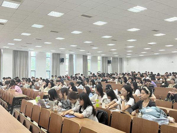 最后,学院党委副书记胡苹作总结。她从2022级学生入学以来的点滴,引导同学们积极思考学习的方向与意义,并提出三点希望:一是坚定学术诚信、遵守考试纪律、扎实推进学业进步;二是尽早确立目标,做好生涯规划,鼓励继续升学深造;三是抓紧一分一秒,维持良好心态,不负青春不负韶华。