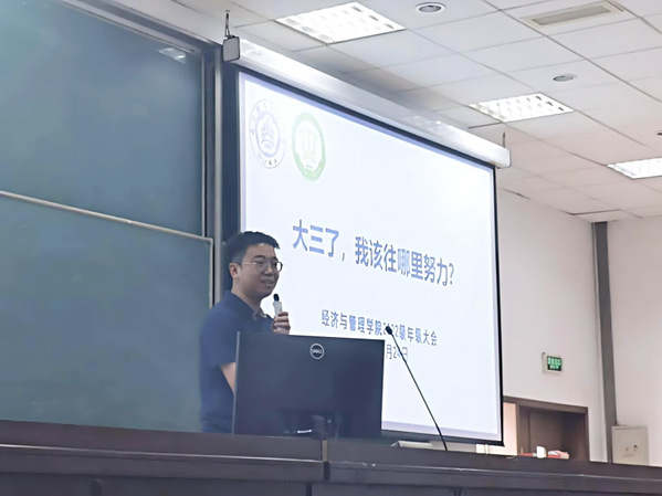 辅导员张延波针对年级当前普遍存在的迷茫状态,进行大三学习规划动员。结合年级学风建设情况、学业预警及处理情况、身边优秀学生榜样,描绘蓝图又讲清底线,鼓励学生们减少内心焦虑,以积极的态度应对未来的选择与挑战。