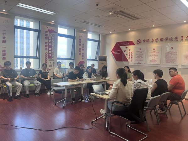 首先,刘婷炜结合学院特色领学了二十届三中全会中关于进一步全面深化改革的相关内容,并强调了二十届三中全会的重要意义以及与经管学子的密切联系,让各支部书记认识到持续深入开展理论学习的重要意义。