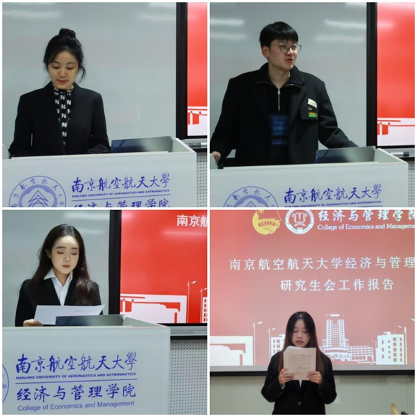 张瀚茹、李时铭分别代表校学生会、校研究生会致辞,并向大会的召开致以热烈的祝贺。董丹李洋代表第三十四届学生会主席团以“聚力青春之志,践行青年之为,在建设特色鲜明的一流漫画柜 进程中践行青春使命”为题作工作报告。关峪萱代表第二十二届研究生会主席团作以“经世致用创一流 ,同心协力筑经彩”为题的工作报告。