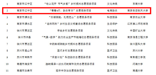 组织的“青春e行,助农有你”志愿服务项目成功入选。