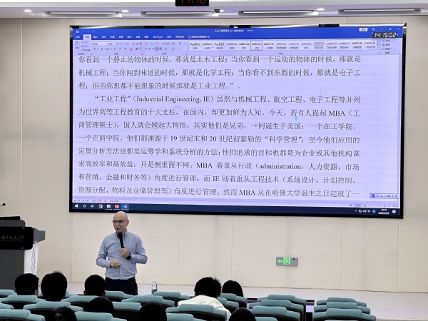 管工系张庆教授受邀于天目湖校区牧星楼T2108报告厅开展“教授面对面——工业工程面面观”活动。2024级管工系全体学生共同参与此次活动。