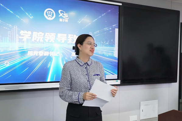 胡苹为开班仪式致辞。她首先对本次活动到场的领导、嘉宾表示热烈的欢迎,对新手村科技公司的支持表示感谢。她提出,在文科专业“就业难”的背景下,本次训练营是学院瞄准时代变化,结合专业特色进行的一次创新体验和尝试,希望能为不同阶段、不同类型的学生群体开拓就业渠道。随后,胡苹围绕认清就业形势、拥抱时代变革、专业精准赋能、勇于探索尝试四个方面对参训学生提出了殷切期望,鼓励学生主动适应AI时代的发展趋势,提升自身竞争力。