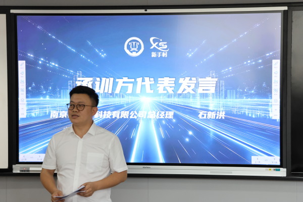 石新洪作为承训方代表发言。他提出,直播的全流程业务与经管类专业有高度契合性,能充分发挥工商管理、市场营销、大数据管理与应用等专业特色。目前该领域人才紧缺、就业前景广阔,且有专业的技能证书支持,能够从专业性、灵活性等多个方面助力学生职业发展。