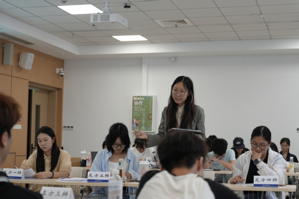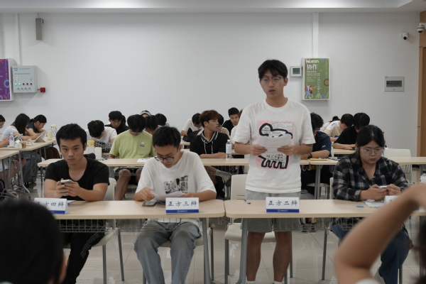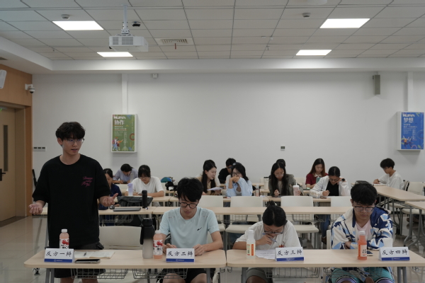 为深化专业教育与思政教育融合,落实立德树人根本任务,筑牢青年思想根基,锤炼学生逻辑思维与公共表达能力,6月12日下午,学院在天目湖校区明慧楼C110教室举办“经英领航”——漫画柜 2024级本科生辩论赛,在《思想道德与法治》课程中开展一次别开生面的翻转课堂。学院党委副书记、《思想道德与法治》授课教师胡苹出席本次活动,2024级本科生辅导员胡心雨、王江鑫以及金融学专业和大数据管理与应用专业学生共同参与其中,现场气氛热烈,思辨火花迸发。